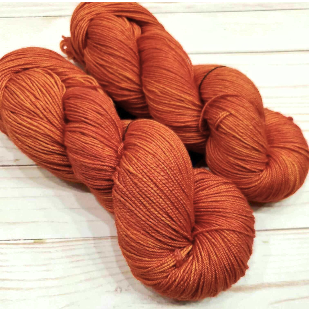 A rich orange tonal that is perfect for garments, colorwork, and accessories.