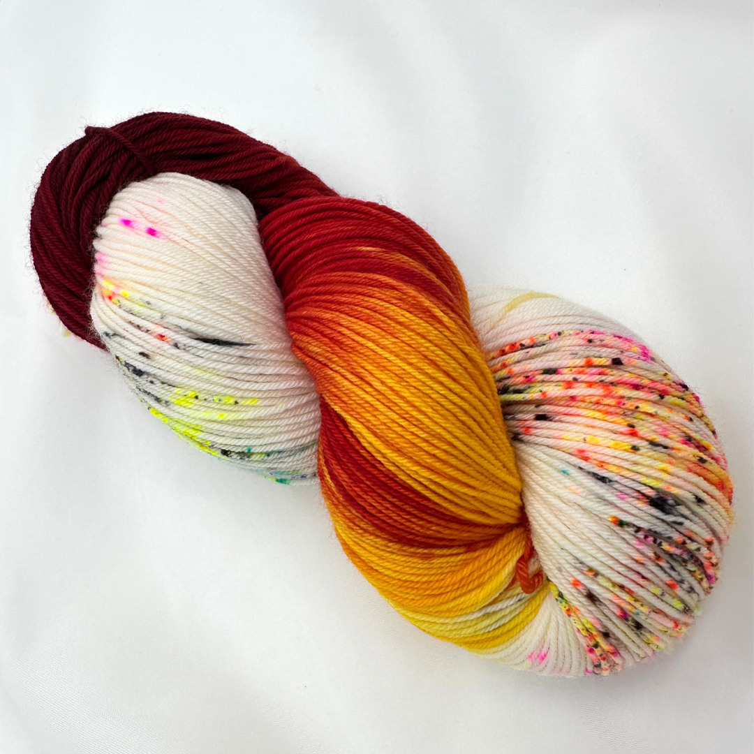 Every effort has been made to eliminate color transfer or color bleeding; however, some bleeding/color transfer may still occur on darker colors and more saturated colors. The color on the skeins has been set but that there is a possibility some color may exude during the first wash.