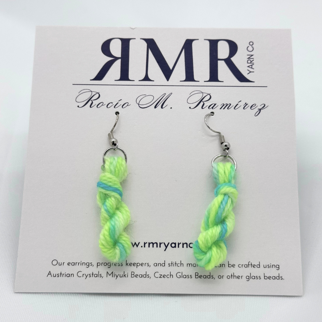 Celebrate your love of fiber in style with these one-of-a-kind yarn hank earrings, handcrafted from our Rocío base a fine merino/nylon blend and hand dyed by Us!
