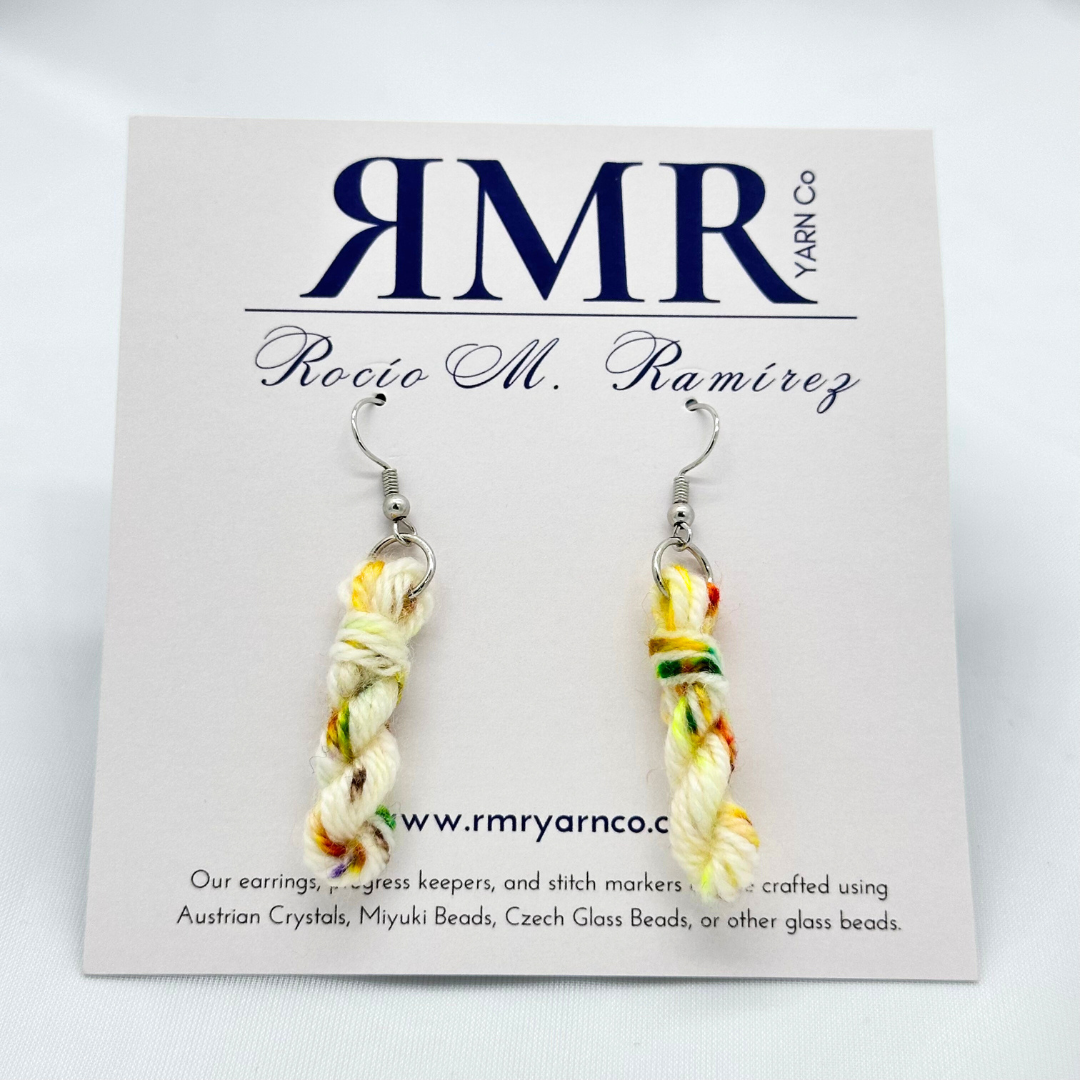 Celebrate your love of fiber in style with these one-of-a-kind yarn hank earrings, handcrafted from our Rocío base a fine merino/nylon blend and hand dyed by Us!