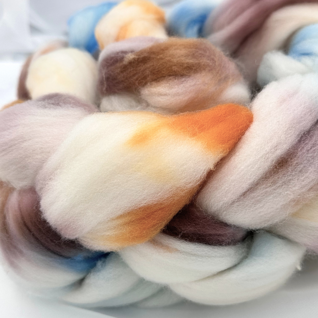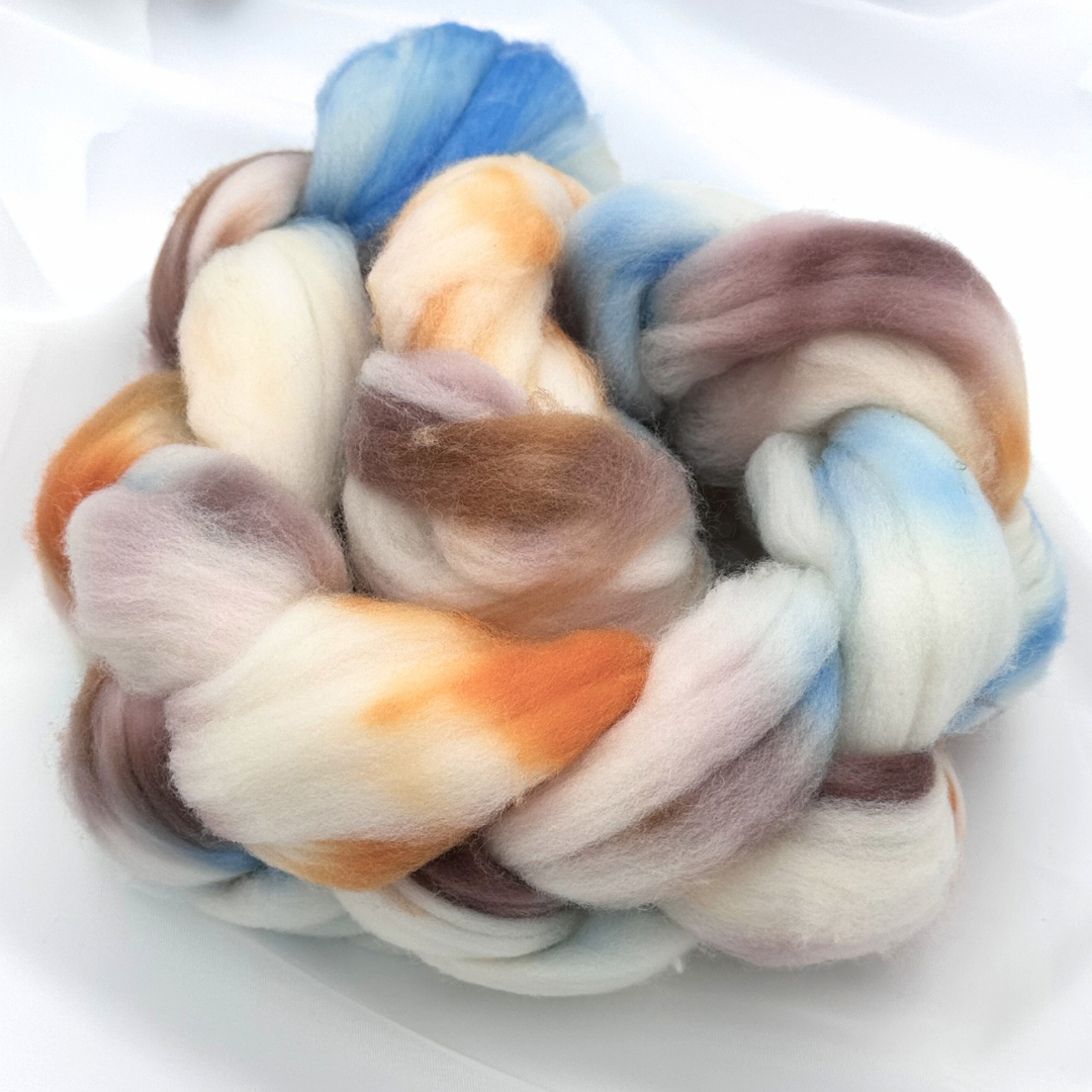 Each braid is dyed in small batches in our studio, allowing for rich, saturated hues and subtle tonal variation. The Superwash treatment provides a smoother finish and reduces felting, making it a great option for spinning yarns intended for everyday use — especially for garments and accessories that may see more wear and washing.