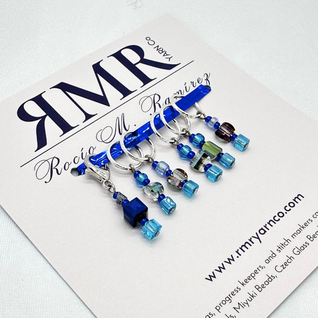 Add a touch of sparkle and sophistication to your knitting with this set of elegantly handcrafted stitch markers, thoughtfully designed to combine beauty and function. Each piece is carefully assembled by hand and may include Austrian crystals, Miyuki beads, Czech glass, and other high-quality materials and glass beads, resulting in a set that is as refined as it is practical.