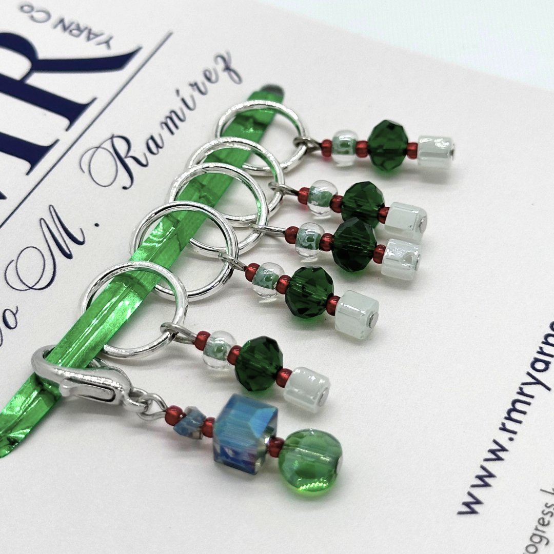 Add a touch of sparkle and sophistication to your knitting with this set of elegantly handcrafted stitch markers, thoughtfully designed to combine beauty and function. Each piece is carefully assembled by hand and may include Austrian crystals, Miyuki beads, Czech glass, and other high-quality materials and glass beads, resulting in a set that is as refined as it is practical.